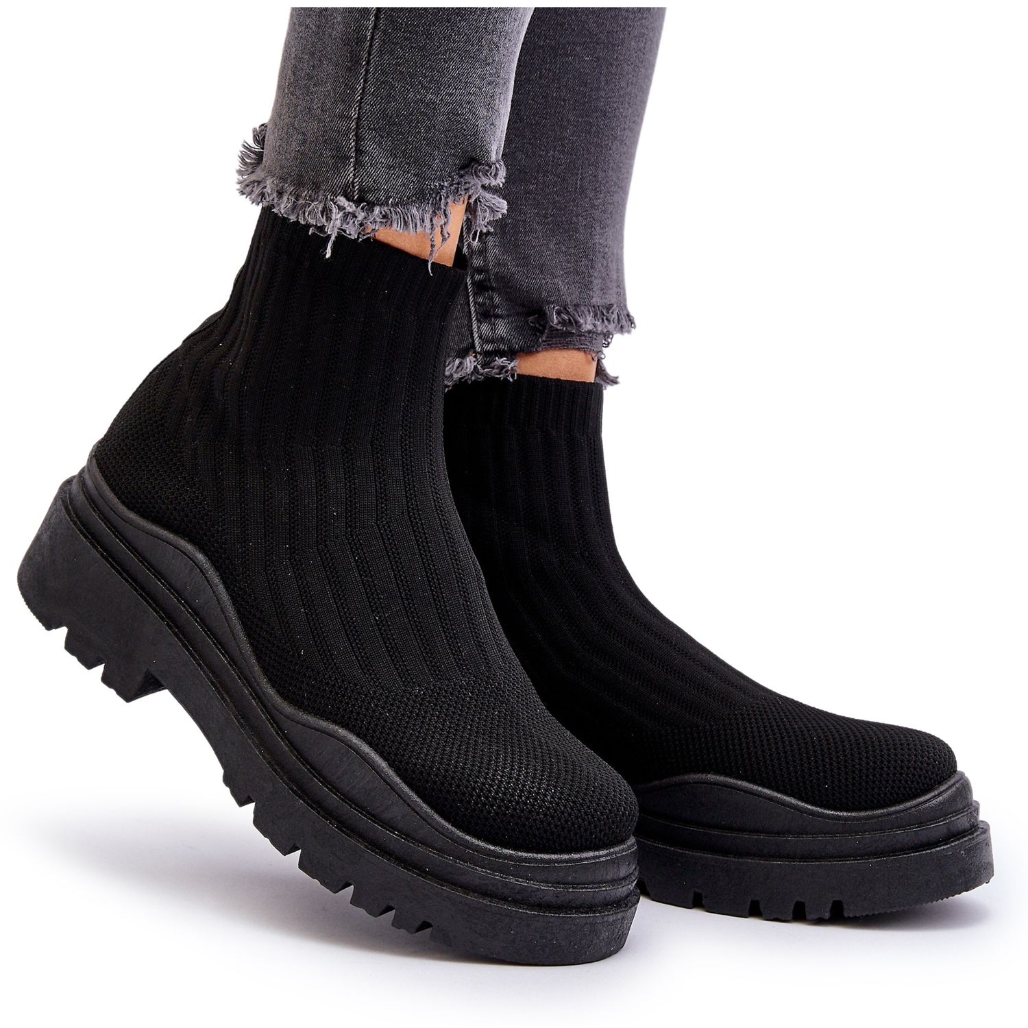 Marquiiz Marquiiz Bottes chaussettes noires à enfiler pour femmes sur une semelle massive le noir