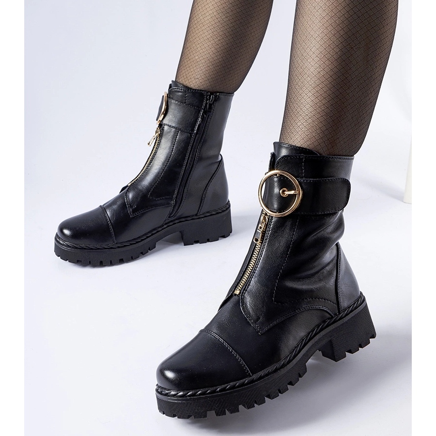 Classe isolée noire (modèle HF260) - chaussures féminines élégantes et fonctionnelles créées pour les jours froids. Le design classique et intemporel en noir universel est combiné avec des solutions pratiques: isolation, une attache de fermeture éclair confortable et une semelle plate et stable - parfaite pour les promenades d'hiver et les activités quotidiennes.