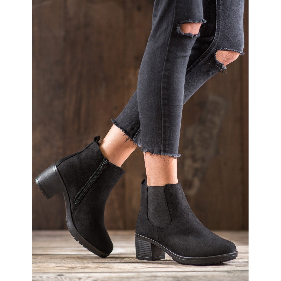 Un talon bloc stable de 6 centimètres assure un confort d'utilisation, et la fermeture à glissière et l'insert élastique décoratif facilitent l'enfilage et le retrait des chaussures. À leur tour, le bout rond et le talon intégré et souple assurent le confort et la commodité du pied, tout en assurant une stabilité adéquate.