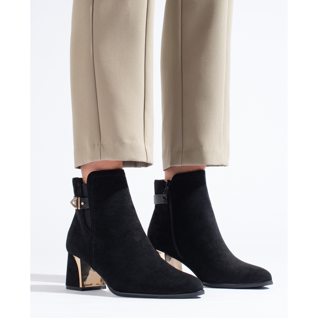 Découvrez l'élégance et le confort des bottines classiques en daim noir de la célèbre marque Shelovet. Ces chaussures élégantes pour femmes sont le choix parfait pour un usage quotidien, s'adaptant parfaitement au style décontracté qui conviendra aussi bien au travail que lors des réunions entre amis.