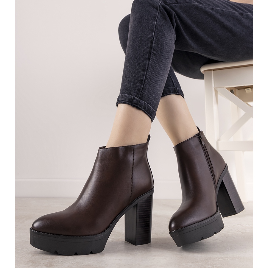 Les chaussures sont en cuir écologique mat. Les chaussures sont fermées par une fermeture éclair. La semelle épaisse augmente le confort d'utilisation au quotidien. Numérotation standard, veuillez vous référer à votre taille.