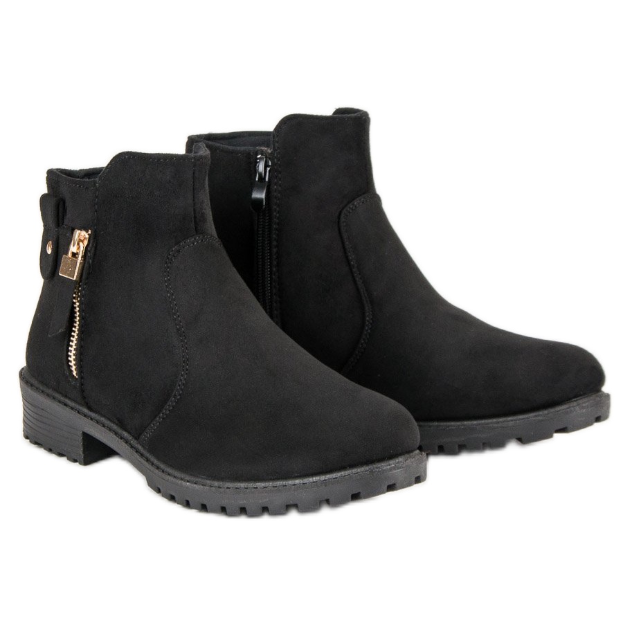 Les bottines classiques pour femmes noires sont un choix parfait pour l'automne à venir. Grâce à leur talon minimaliste de seulement 3 cm, elles assurent stabilité et confort lors des promenades quotidiennes, même sur des surfaces glissantes. Ces chaussures universelles, équipées d'une fermeture éclair latérale avec un cadenas décoratif, sont parfaites pour les styles décontractés et plus formels.
