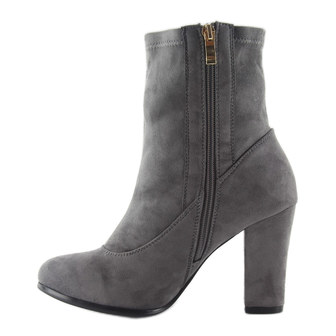 Les bottines classiques à talons hauts fa141 Grey sont le choix parfait pour les femmes qui apprécient l'élégance et le confort au quotidien. Fabriquées en daim écologique doux et de haute qualité, ces bottines grises sont non seulement extrêmement élégantes, mais sont également respectueuses de l'environnement. Leur talon stable de 9 cm garantit un confort de port pendant de longues heures, tout en allongeant optiquement les jambes, donnant à la silhouette une forme élancée.
