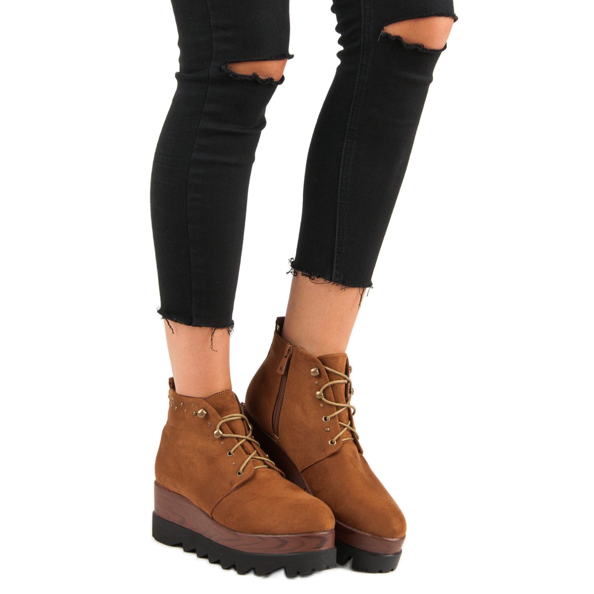 Découvrez un style et un confort inégalés avec les bottines compensées marron de Kylie ! Ces chaussures pour femmes uniques se distinguent par leur design original et une cale solide et épaisse qui remplace parfaitement la semelle traditionnelle. Grâce à cela, le modèle devient le complément parfait aux styles décontractés, en leur ajoutant un caractère unique.