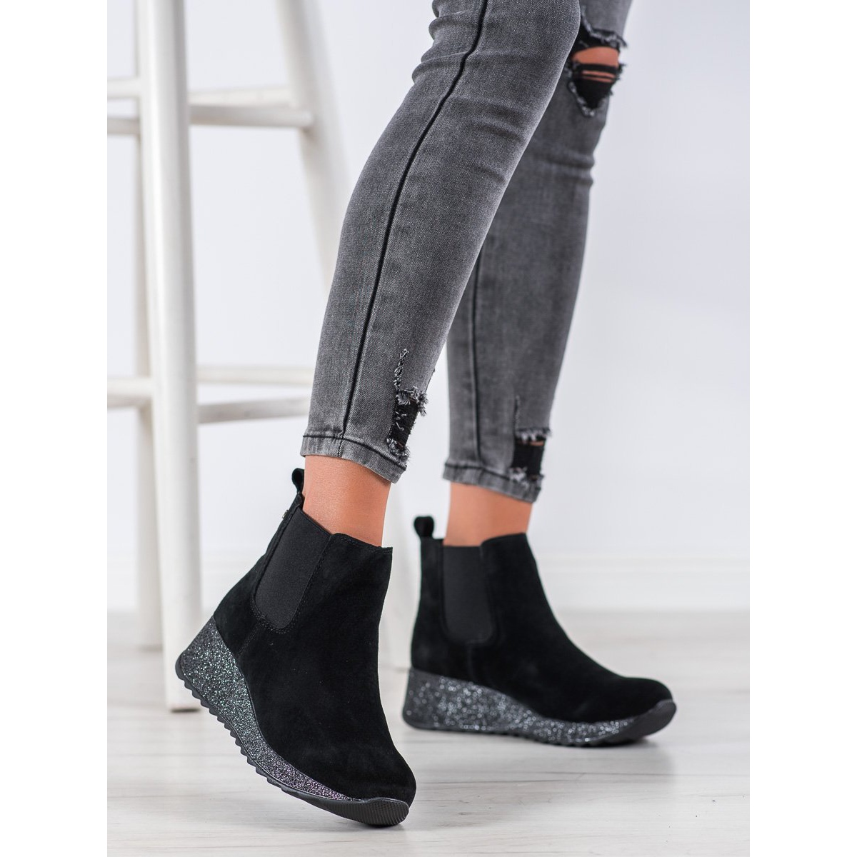 La hauteur supérieure de 10-11 cm et la largeur de 24 cm garantissent stabilité et confort de port. Une cale de 5 cm de hauteur rend les bottes parfaites pour un style quotidien, tout en offrant une légère augmentation qui affine la silhouette. La semelle crantée offre une bonne adhérence, ce qui en fait un choix idéal pour diverses surfaces.