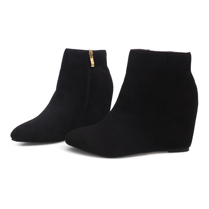 Avec une hauteur de cale de 8 cm, ces chaussures allongent parfaitement la silhouette tout en assurant stabilité et confort de port. Le nez rond et la fermeture éclair permettent de l'enfiler et de l'enlever facilement, et la longueur haute à la cheville ajoute un caractère unique à n'importe quel style.