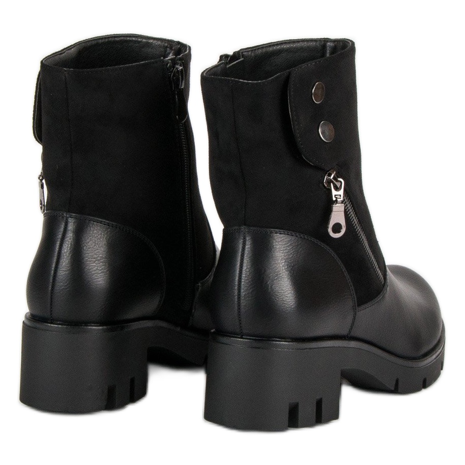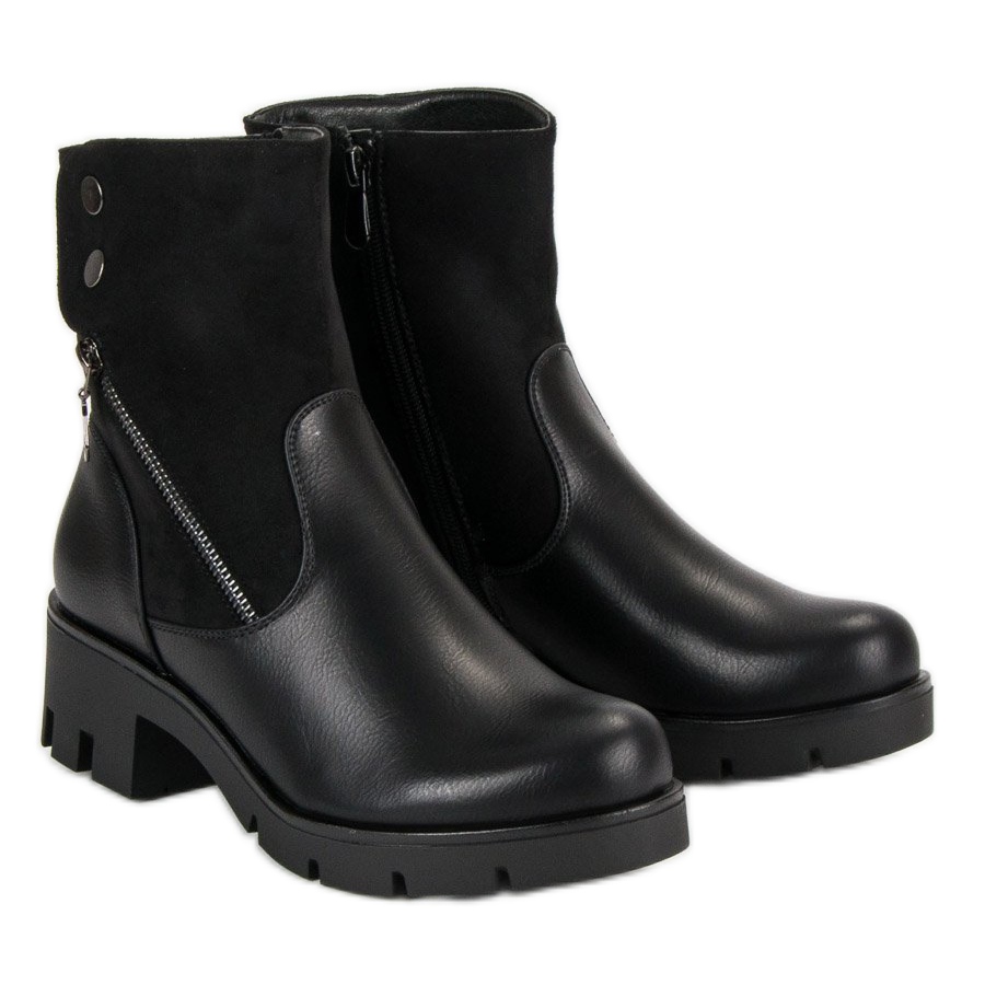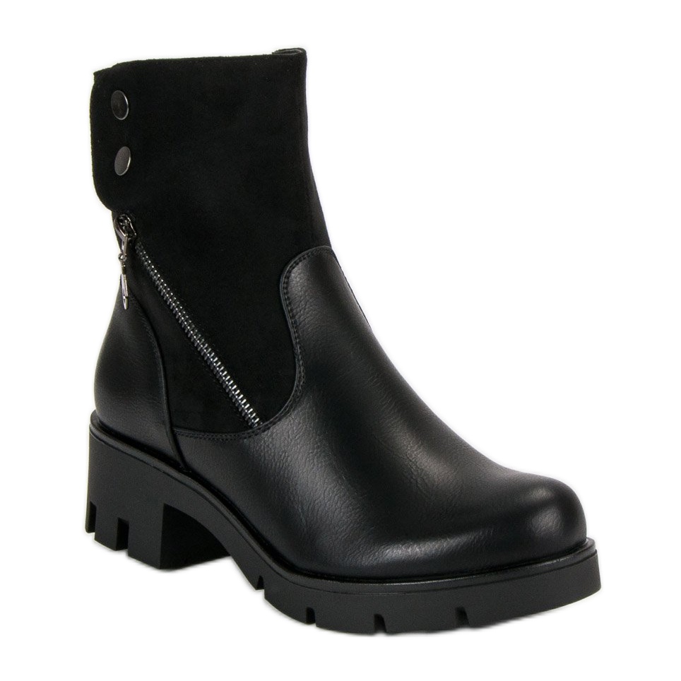 Filippo Les bottines noires confortables avec protection sont le choix parfait pour les femmes qui souhaitent allier confort et style à la mode. Ces bottines noires allient des accents militaires à une élégance féminine, ce qui les rend parfaites pour les journées plus froides. La fermeture éclair décorative et les boutons-pression leur confèrent un caractère unique, et la fermeture éclair pratique sur le côté permet un enfilage rapide et pratique.