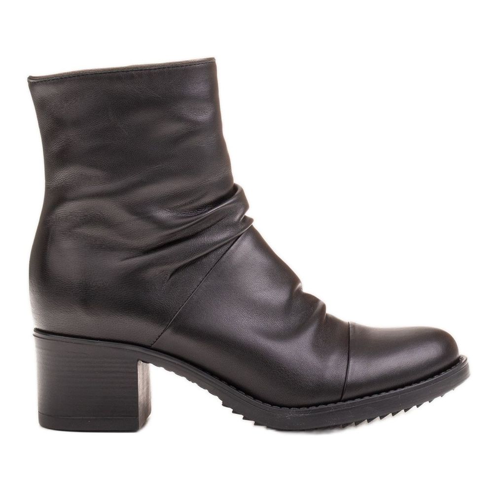 Détails: Marco Shoes Bottes confortables en cuir noir avec fronces