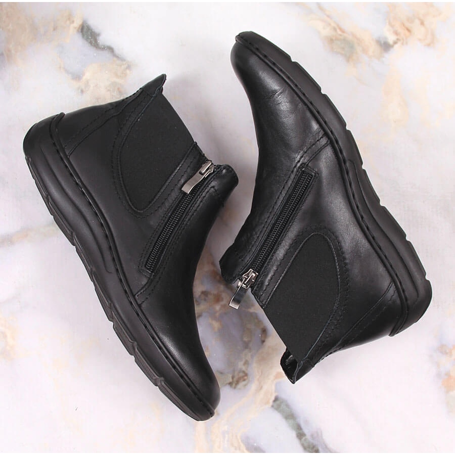 Détails: Bottes confortables en cuir pour femmes avec fermetures à glissière Łukbut isolées le noir