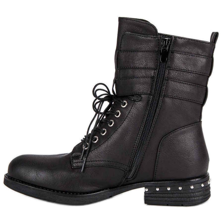 Se distinguant par son style rock, les bottes Super Me sont équipées de trois types de fermetures : des lacets classiques, une fermeture éclair tendance qui a également une fonction décorative et une boucle située sur la partie supérieure de la tige. Le talon plat de 4 cm de haut offre stabilité et confort, ce qui en fait un excellent choix pour un usage quotidien.