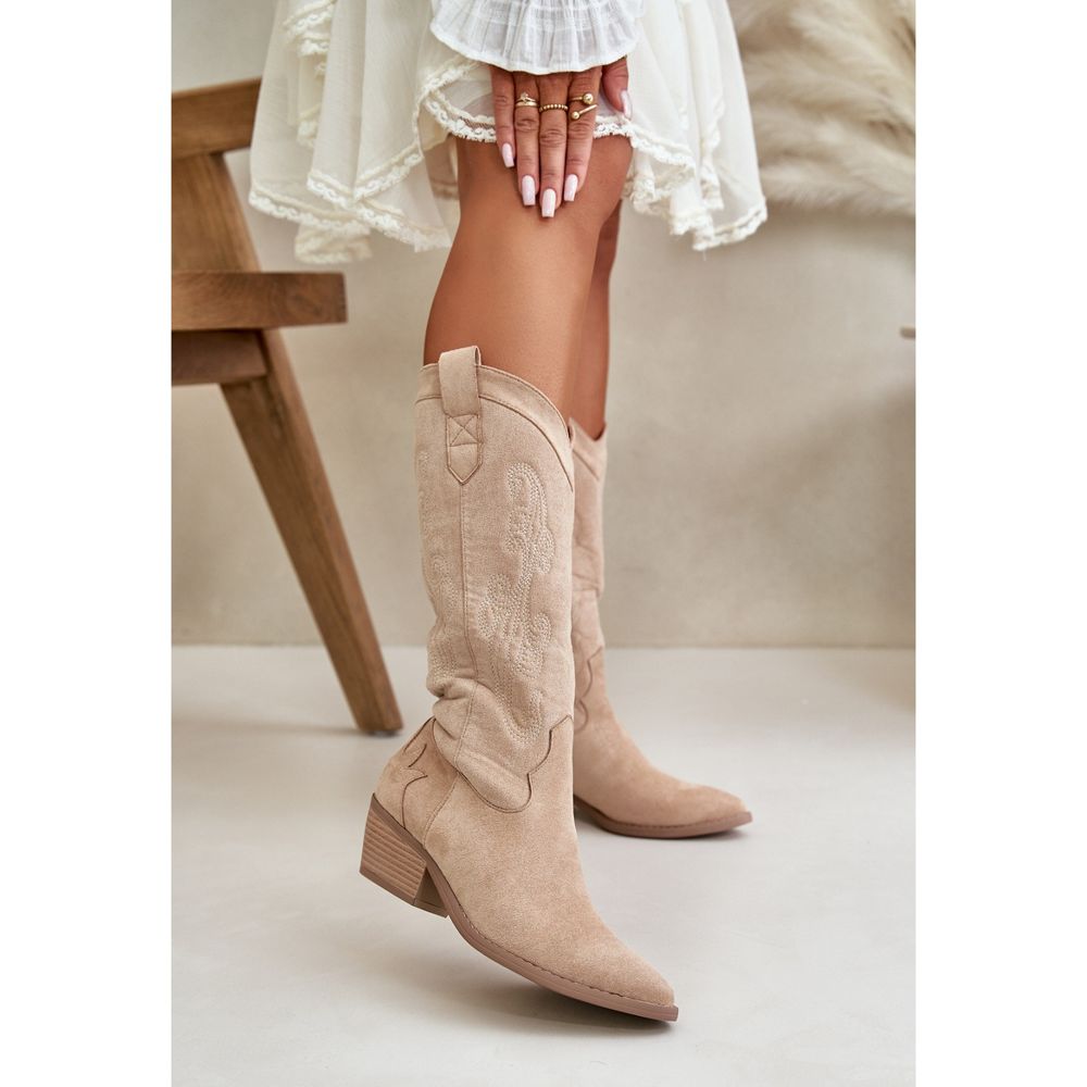 Détails: Bottes cowboy à talon bas pour femme en suède écologique, beige Ligelia