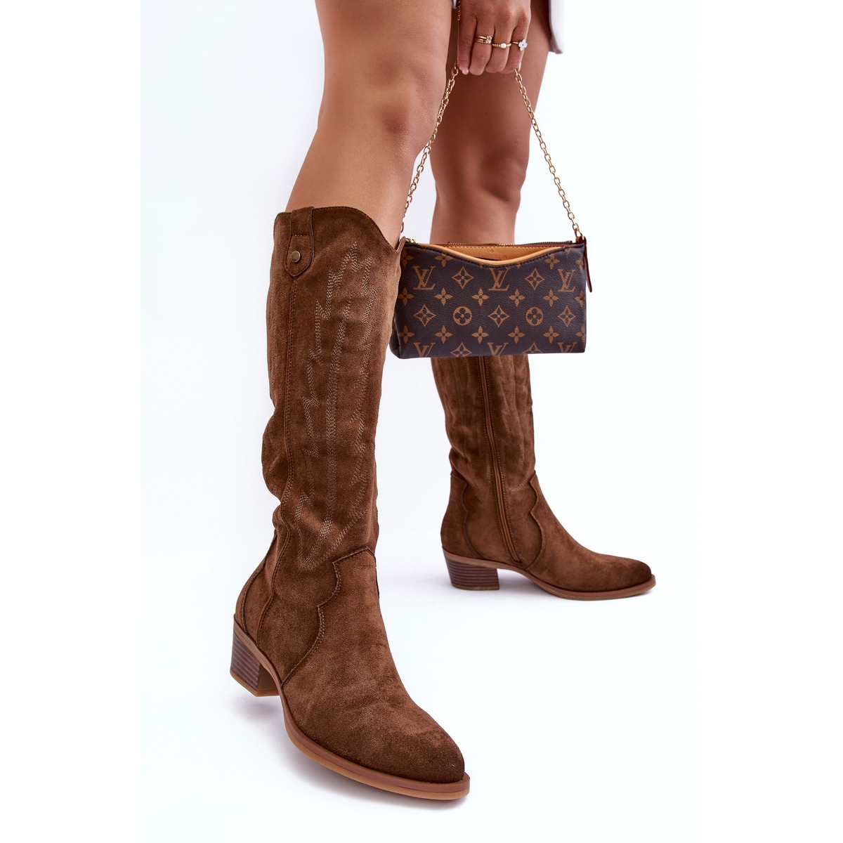 Détails: PS1 Bottes cowboy à talons bas en daim marron Lunah brun
