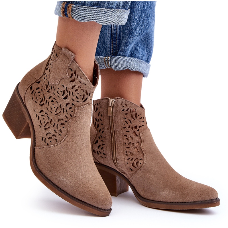 S.Barski S.Barski Bottes Cowboy Ajourées En Daim D&A SN622-21 Beige Foncé