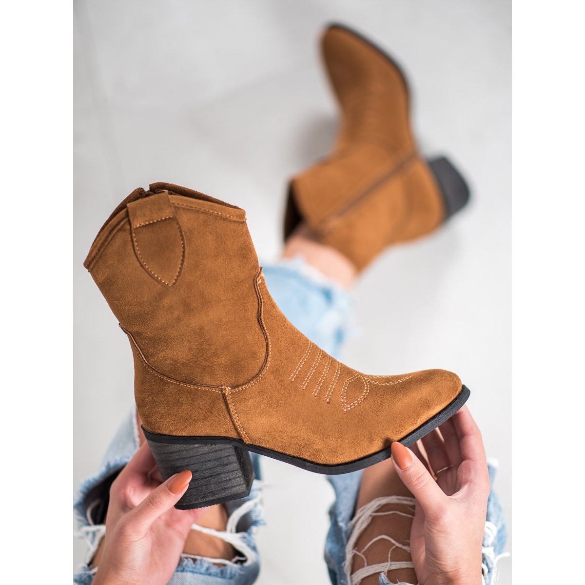 Fabriquées en cuir suédé écologique, les bottes de cowboy Super Mode sont respectueuses de l'environnement et offrent un confort de port exceptionnel. La tige arrivant au-dessus de la cheville s'adapte parfaitement à la jambe et la fermeture éclair à l'intérieur facilite l'enfilage des chaussures. Il est intéressant de noter que malgré le caractère cowboy des bottes, le fabricant s'est concentré sur une finition délicate, ce qui donne aux bottes de cowboy un aspect extrêmement élégant.