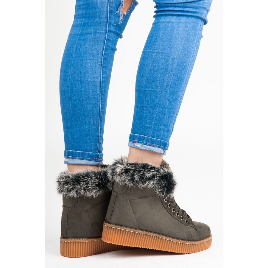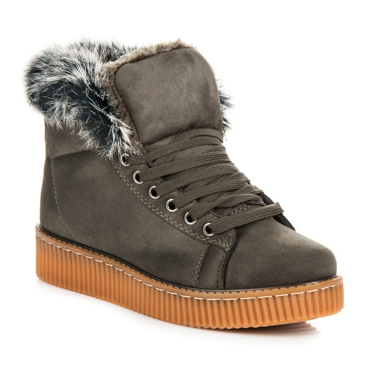 Découvrez la mode automne-hiver avec des creepers vertes avec fourrure ! Ces chaussures vert foncé uniques s'intègrent non seulement parfaitement aux tendances saisonnières, mais offrent également le confort dont vous avez besoin au quotidien. Isolés avec une fourrure douce, ils font de chaque pas un plaisir et vos pieds restent au chaud pendant les journées d'hiver.