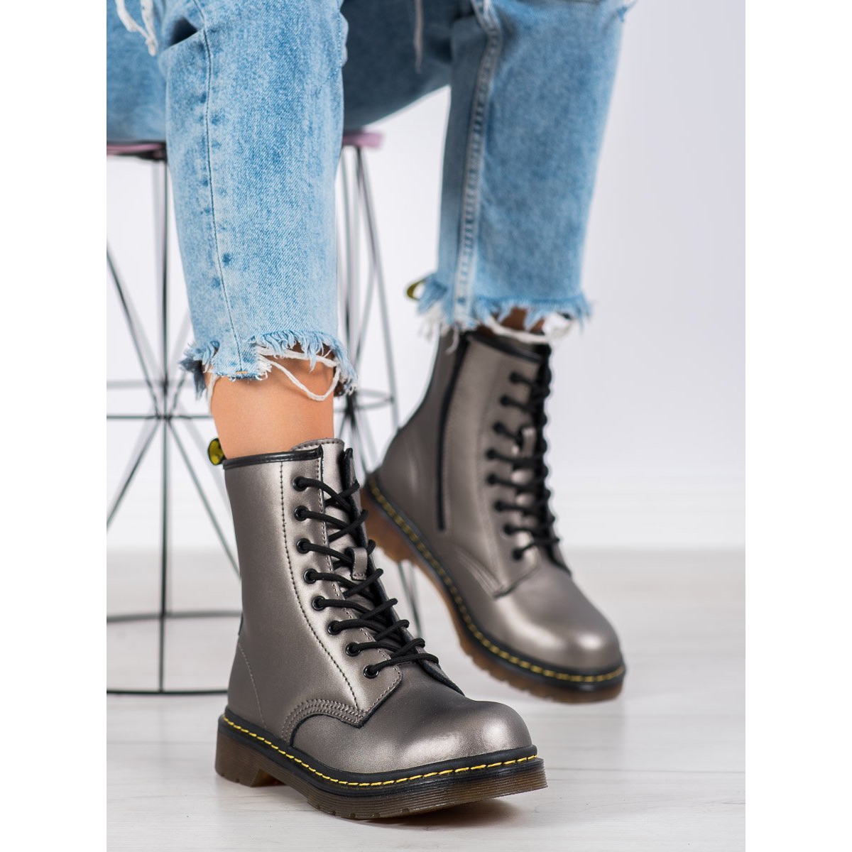 McKey Bottes de combat en cuir avec fermeture à glissière MCKEY argent