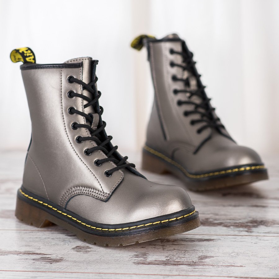 Détails: Bottes de combat en cuir avec fermeture à glissière MCKEY argent