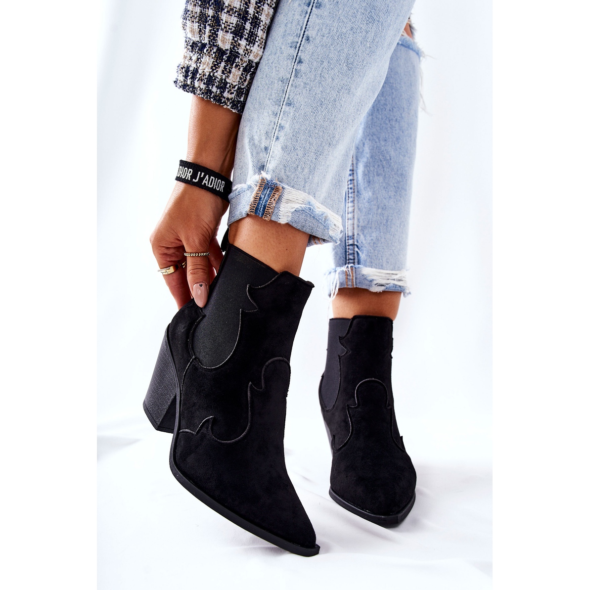 Détails: PG1 Bottes de cow-boy en daim noires Maurelle le noir