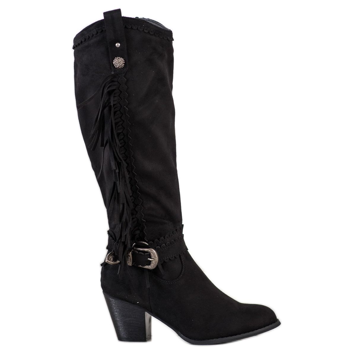 Nous vous présentons les bottes cowboy à franges du célèbre fabricant Diamantique. Ces chaussures élégantes pour femmes sont le choix parfait pour les femmes qui apprécient la mode et le confort. Fabriqués en cuir suédé écologique, ils ont un look phénoménal et leur couleur noire les rend faciles à assortir à différents styles.