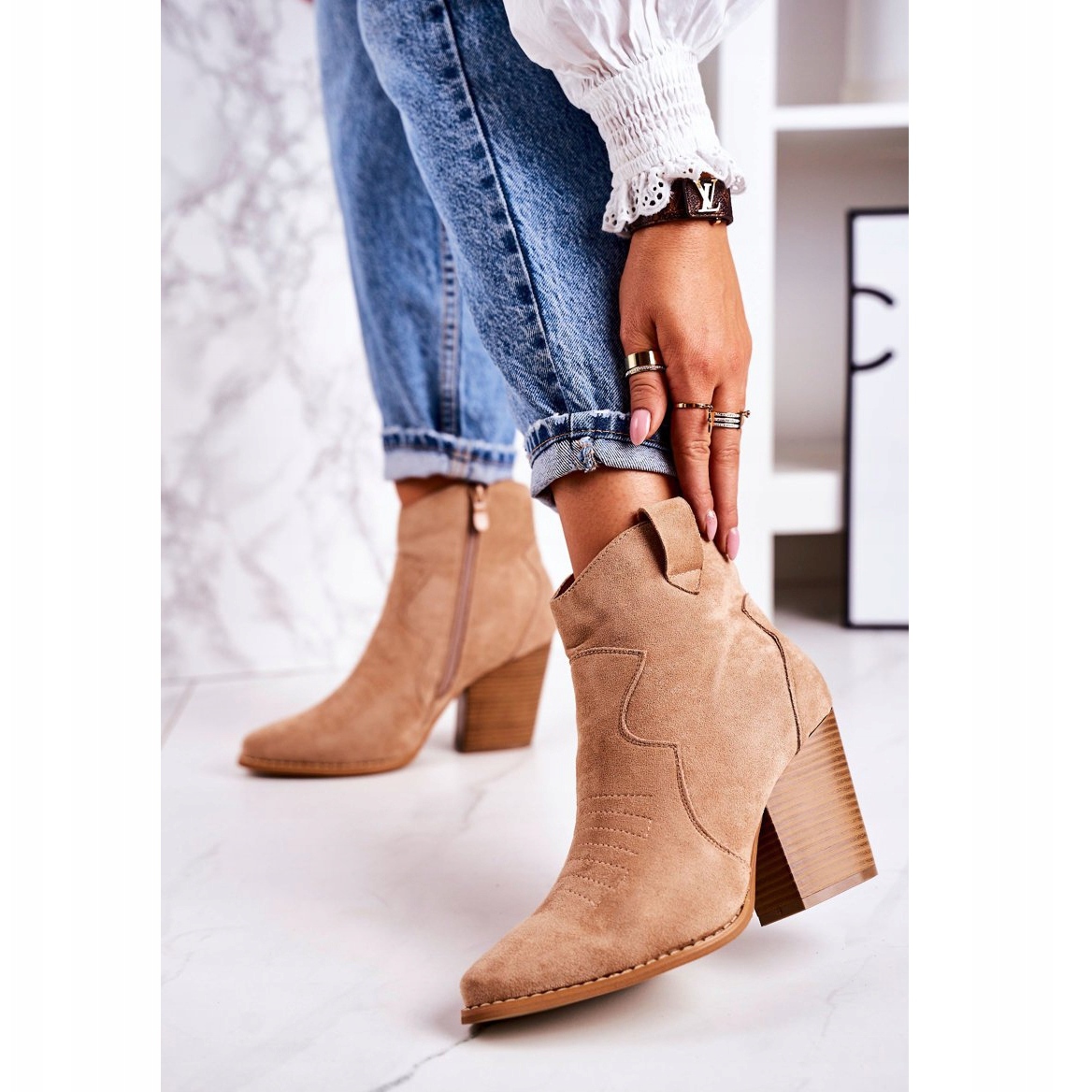 Détails: MSMG Bottes De Cowboy Chaudes Pour Femmes Sur Un Talon Beige Margaret