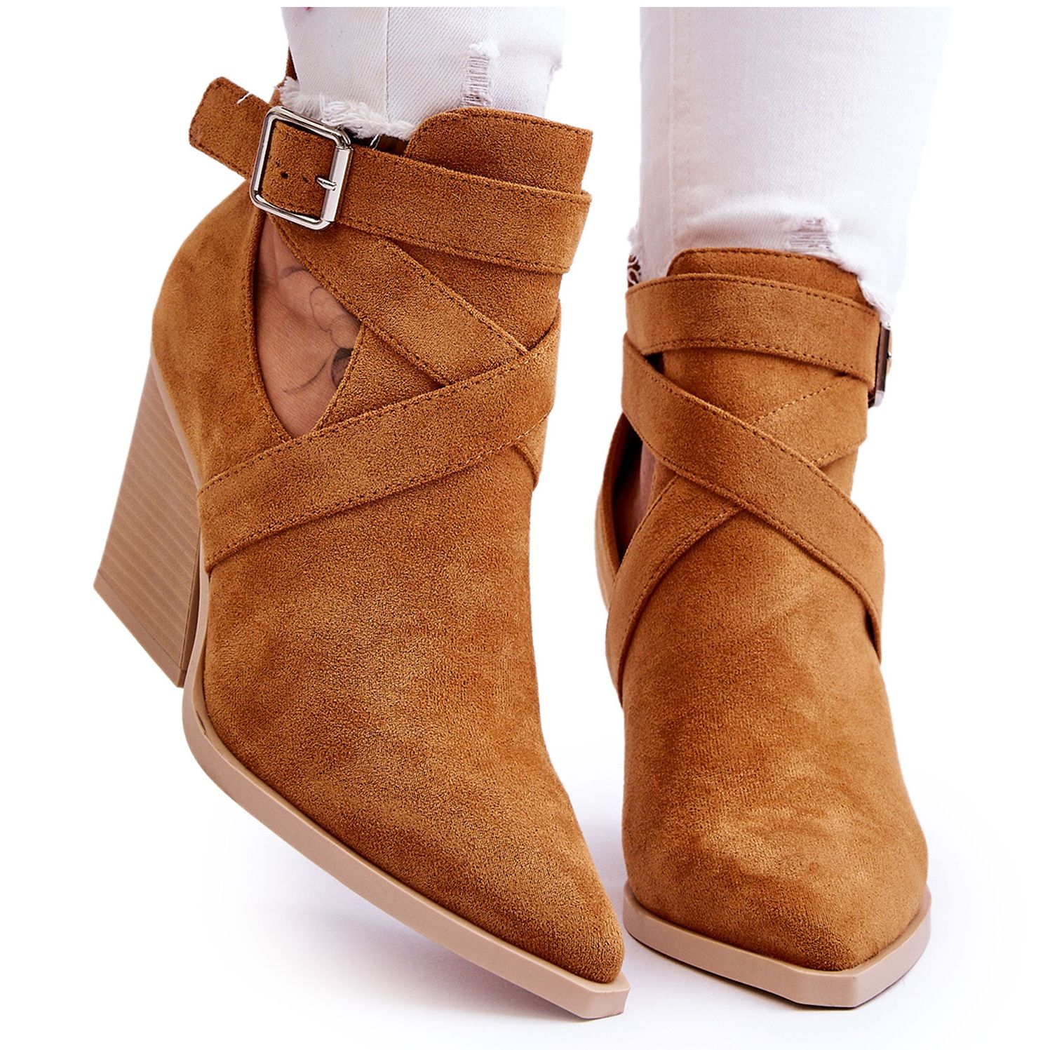 Des bottes élégantes avec une coupe de cow-boy en daim écologique douce dans une nuance universelle de chameau. Le modèle Dennise combine une apparence féminine classique avec confort - elle est intégrée sur un type de talon stable, et la coupe caractéristique sur les côtés ajoute un style occidental. Parfait pour l'automne et l'hiver grâce au réchauffement à l'intérieur.