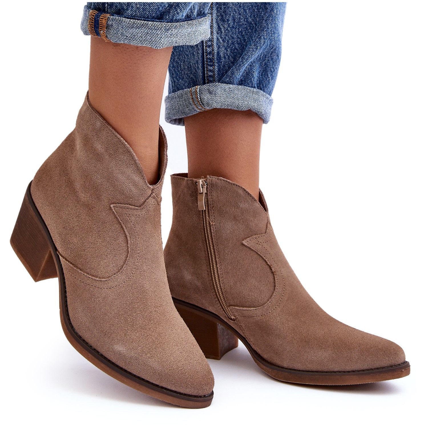 Détails: S.Barski Bottes de cowboy en daim avec fermeture éclair D&A SN622-29 Beige foncé