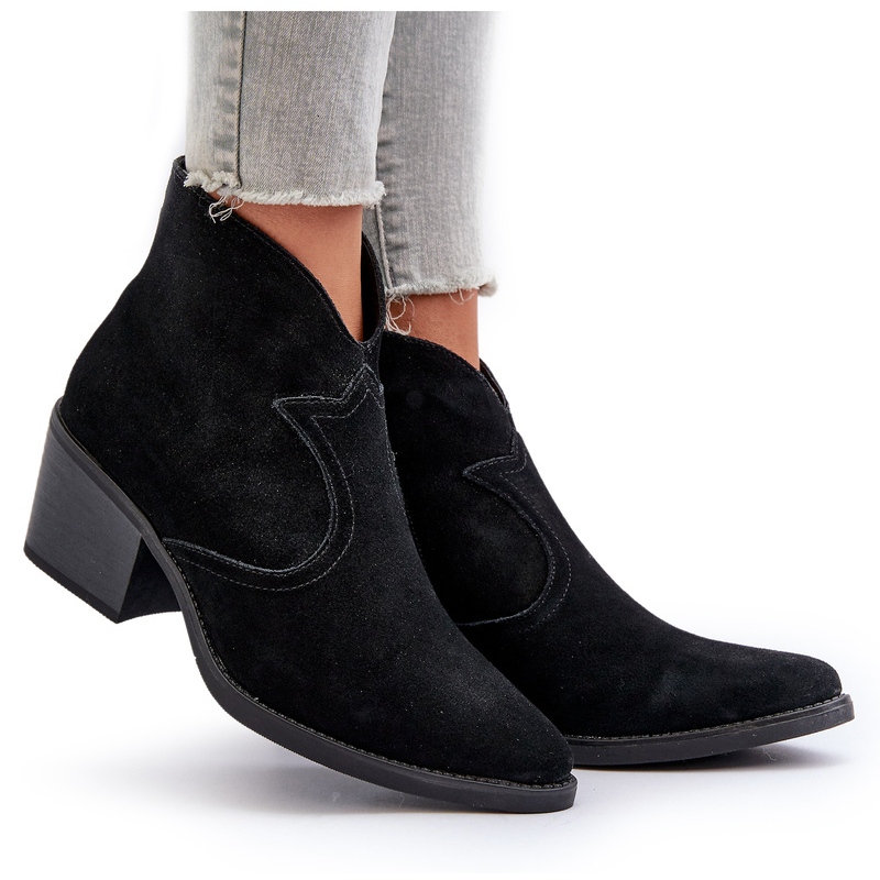 Détails: S.Barski Bottes de cowboy en daim avec fermeture éclair D&A SN622-29 Noir le noir