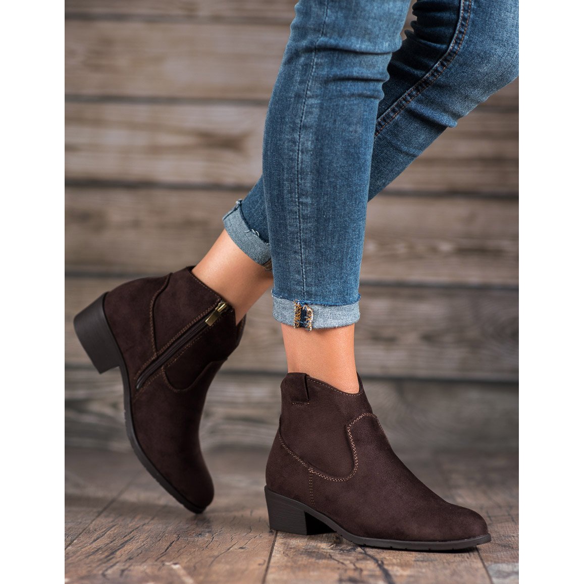 Les bottes de cowboy Filippo en daim marron sont des chaussures parfaites pour les femmes qui apprécient le confort et un look à la mode les jours les plus froids. Fabriqués en cuir suédé écologique d'une élégante couleur marron foncé, ils s'intègrent parfaitement dans les tendances de l'automne et de l'hiver. L'intérieur isolé assure le confort et la matière agréable au toucher protège vos pieds du froid.