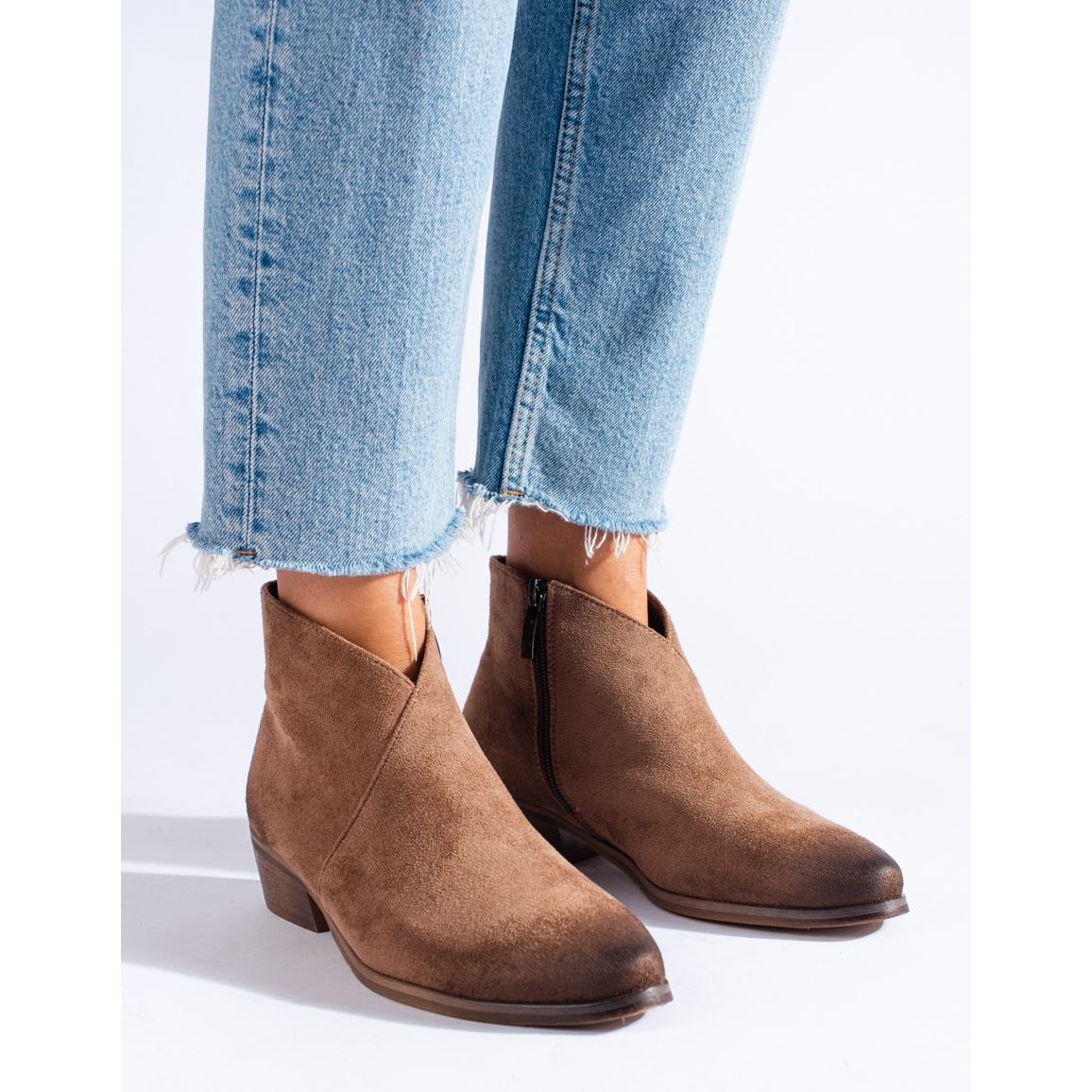 Le modèle de bottes de cowboy en daim marron est exempt de décorations supplémentaires, ce qui souligne leur caractère universel et leur permet de s'adapter à différents styles et occasions. Que ce soit pour le travail, le shopping ou pour une promenade entre amis, ces bottines complèteront parfaitement n'importe quelle tenue décontractée.