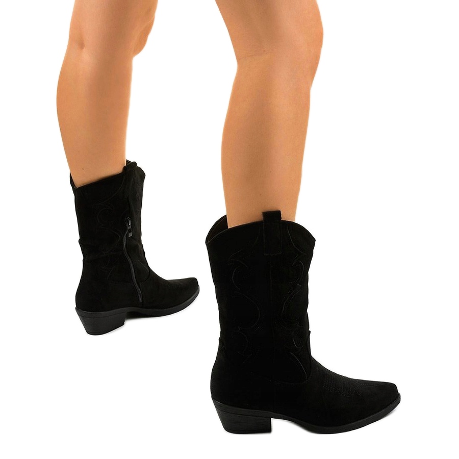 Détails: Bottes de cowboy en daim noir avec une fermeture éclair aelynna le noir