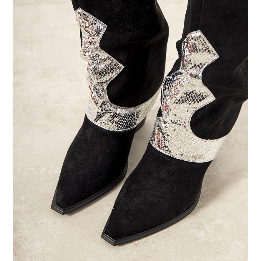 Les inserts argentés qui décorent subtilement les bottes sont un accent extrêmement stylé qui distingue ce modèle des autres. Les bottes Luciana sont caractérisées par une numérotation standard, vous pouvez donc facilement les ajuster à votre taille. Grâce à la fermeture à enfiler, l'enfilage est rapide et pratique, ce qui les rend parfaits pour un usage quotidien.