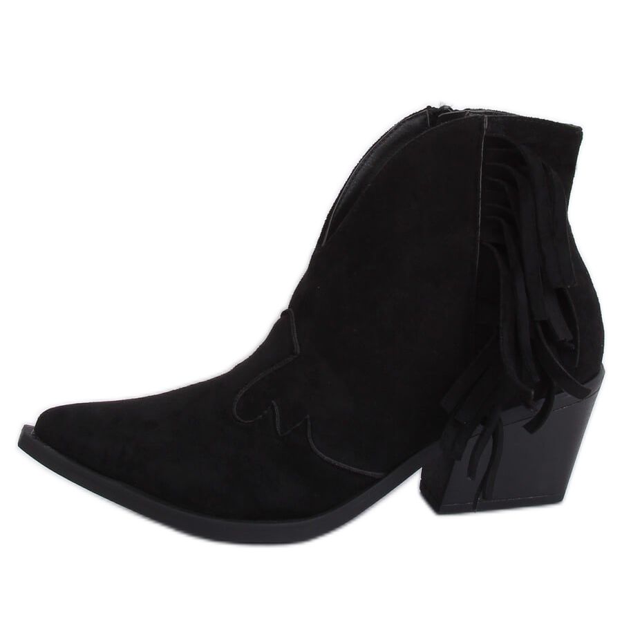 Nous vous présentons les bottes de cowboy pour femmes extrêmement élégantes NC999 Black, qui sont un choix parfait pour les jours de printemps. Ces bottes noires au talon large de 6,5 cm de haut sont un véritable hit mode, se distinguant par des bouts galbés, des découpes et des franges impressionnantes. Grâce à eux, chaque style acquerra un caractère unique.