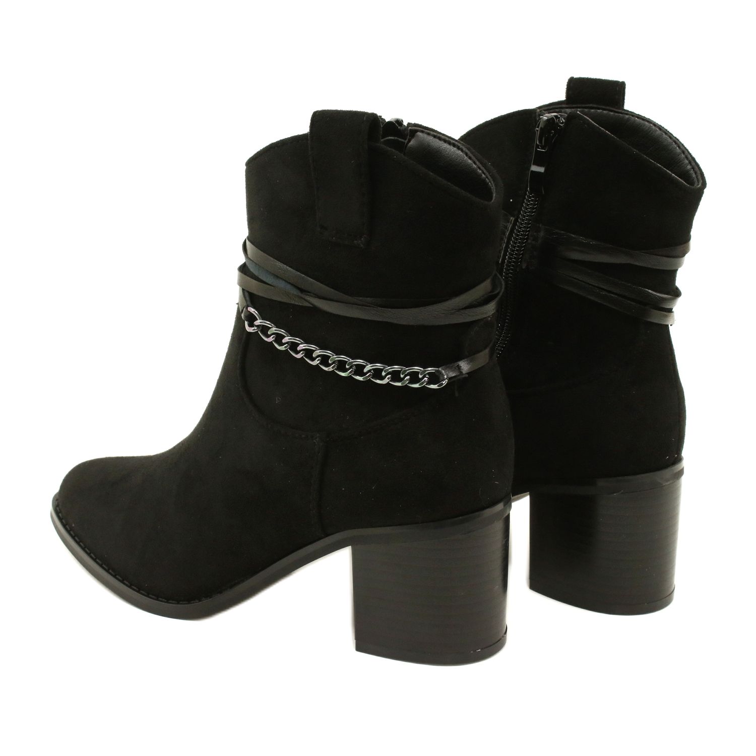 Des bottes féminines élégantes et chaleureuses qui combinent un look classique avec un détail à la mode. Fabriqué en cuir en daim écologique, isolé avec une fourrure douce, équipé d'un curseur pratique et d'une chaîne en argent décorative - parfait pour les jours plus frais lorsque vous voulez avoir l'air élégant et à l'aise.
