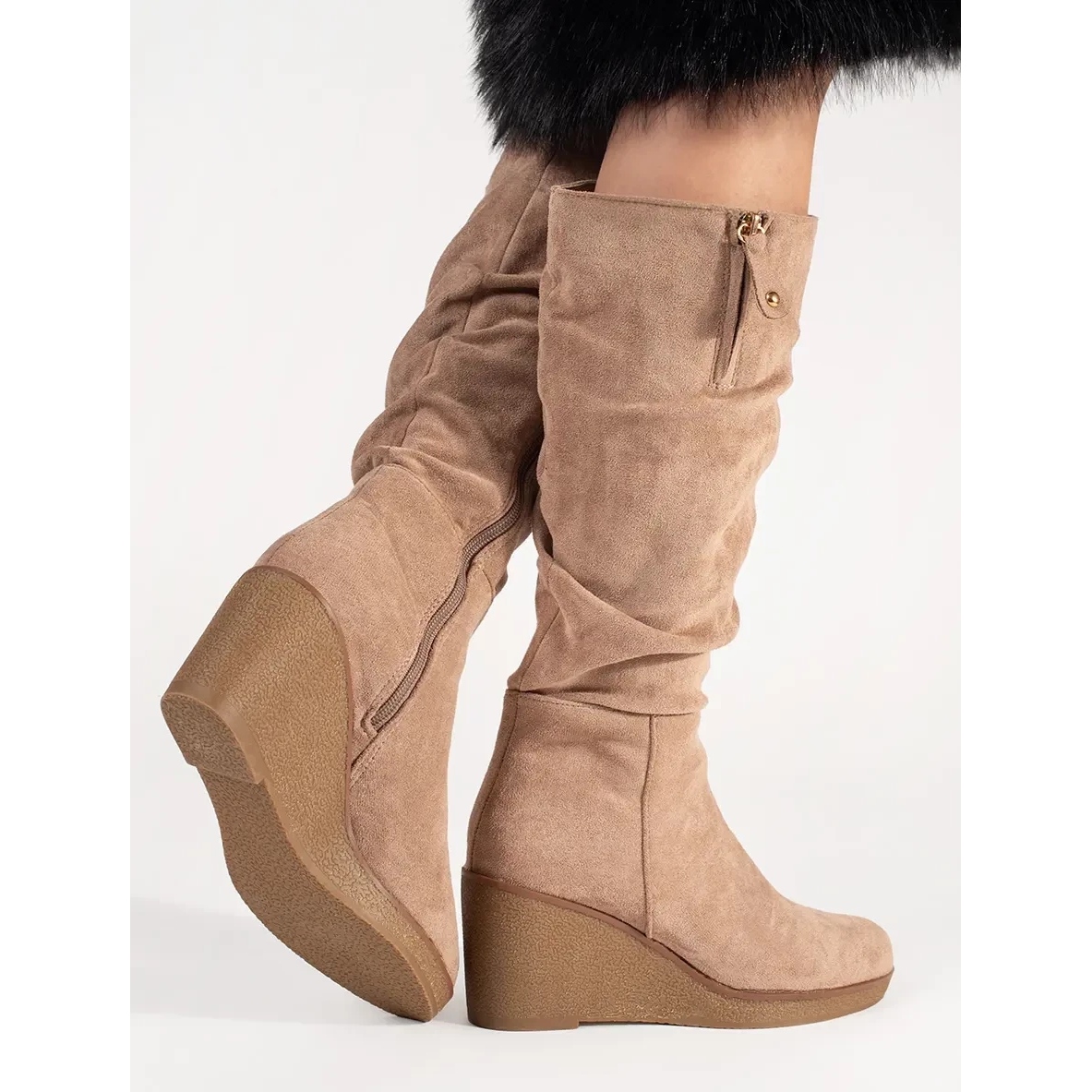 Grâce à l'emballage d'origine du fabricant, ces bottes sont une excellente idée cadeau. Choisissez des bottes pour femmes en daim beige au genou et mettez en surbrillance votre style unique à chaque étape!