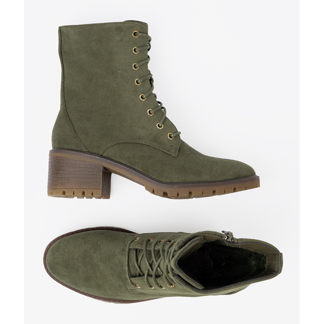 La couleur verte fait de ces bottes un excellent complément à chaque garde-robe, ajoutant de la fraîcheur aux stylisations de tous les jours. La fixation pour le laçage et un curseur facilite la mise en place et l'adaptation des chaussures au pied.