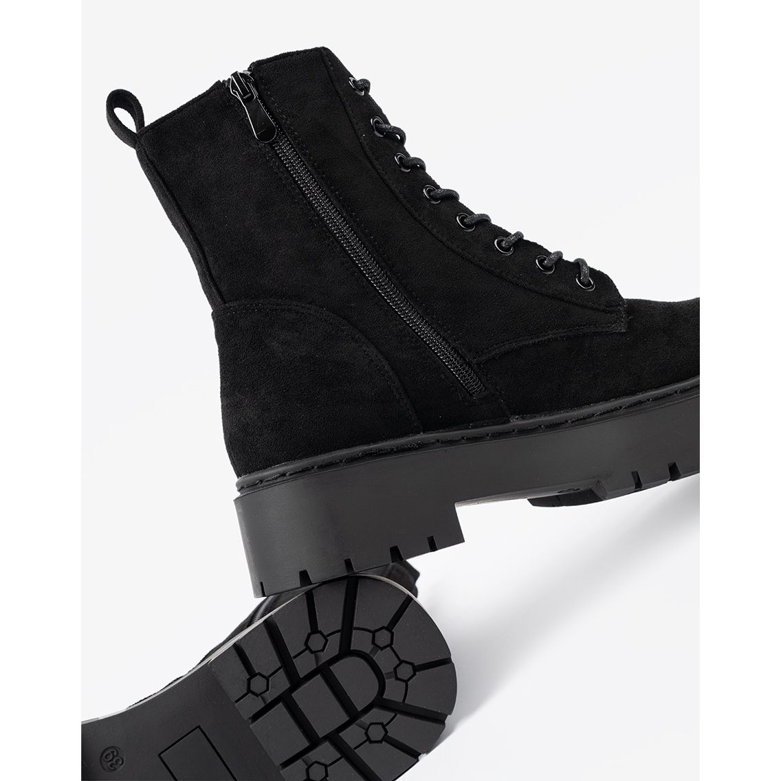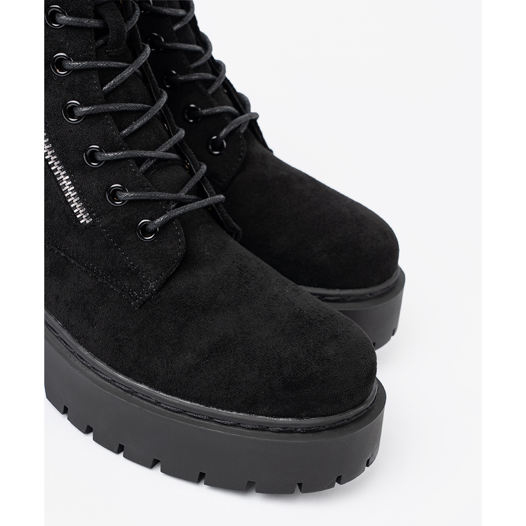 Les trappeurs sont en daim d'imitation de haute qualité, ce qui leur donne un caractère élégant et en même temps décontracté. Le talon est raidi et construit - qui garantit la stabilité et le soutien du pied, et le nez rond offre un confort pendant les longues journées. La hauteur de la tige est de 16 cm, ce qui protège parfaitement la cheville pendant les jours froids.