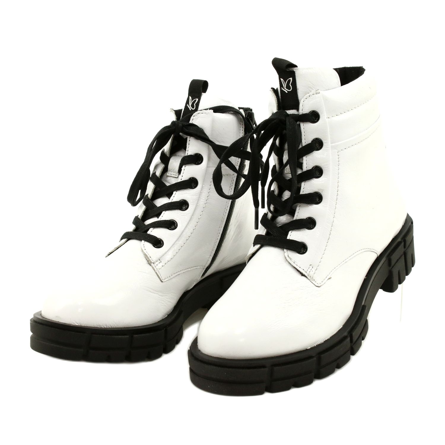 Des bottes de caprice féminines élégantes et verni en blanc nadlak combinent un look à la mode et brillant avec des solutions pratiques, que vous apprécierez en particulier les jours plus frais. Le modèle est entièrement en cuir naturel, isolé avec une fourrure douce - le choix parfait pour les stylisations urbaines lorsque vous avez besoin de chaleur et de confort sans renoncer à l'élégance.