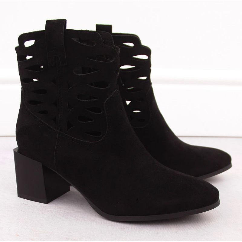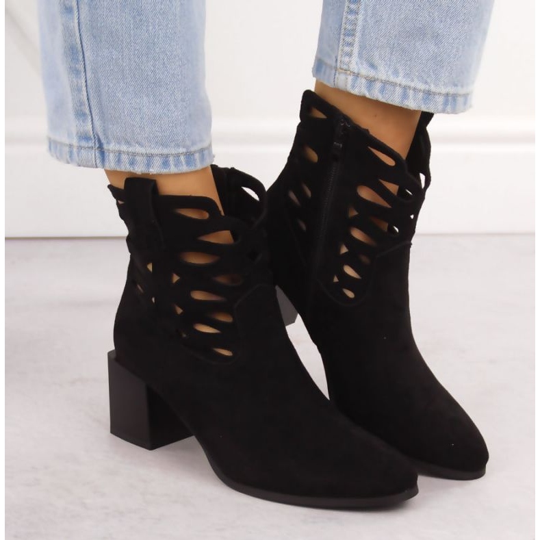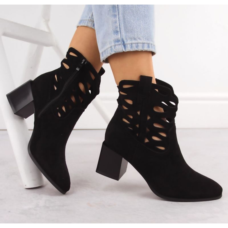 Le tiers des bottes était en cuir écologique en daim de haute qualité, qui garantit leur durabilité et leur apparence attrayante. De plus, l'insert en cuir naturel offre un réconfort lors du port, ce qui signifie que même de longues heures d'activité ne seront pas un problème. Les bottes de la cheville ont été décorées d'un motif de travail ouvert et de découpes, ce qui leur donne l'originalité et en fait un complément parfait aux stylisations quotidiennes et en soirée.