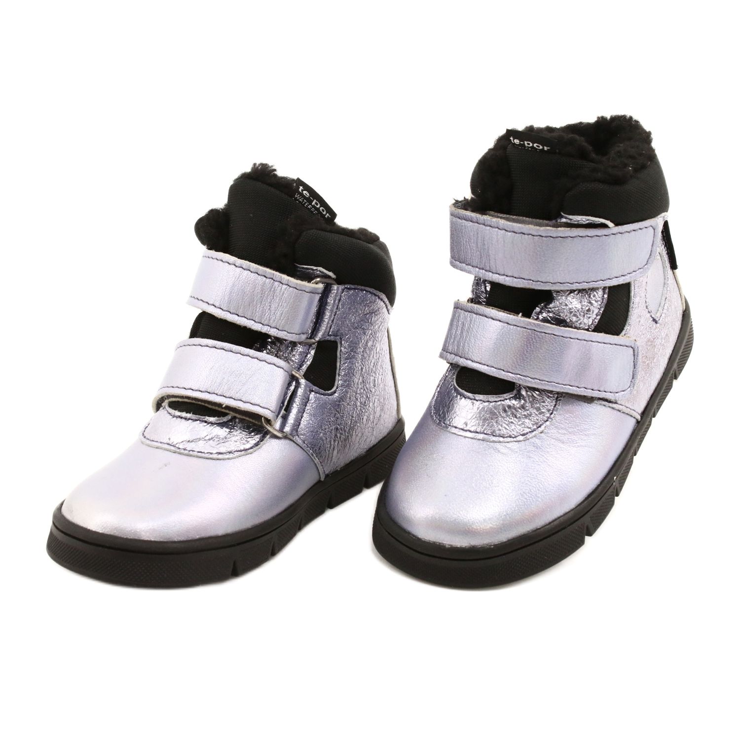 Des bottes d'hiver chaudes et confortables pour les filles, en cuir naturel combinées à un matériau, équipé d'une membrane TE-Por imperméable. Le modèle offre une protection contre l'humidité et le froid, et une attache fermeture scratch pratique le rend plus facile à mettre et à s'adapter rapidement. L'intérieur isolé avec une fourrure doux, le talon raidis stabilise la cheville et la seule seule glissement garantit une bonne adhérence sur des surfaces glissantes.