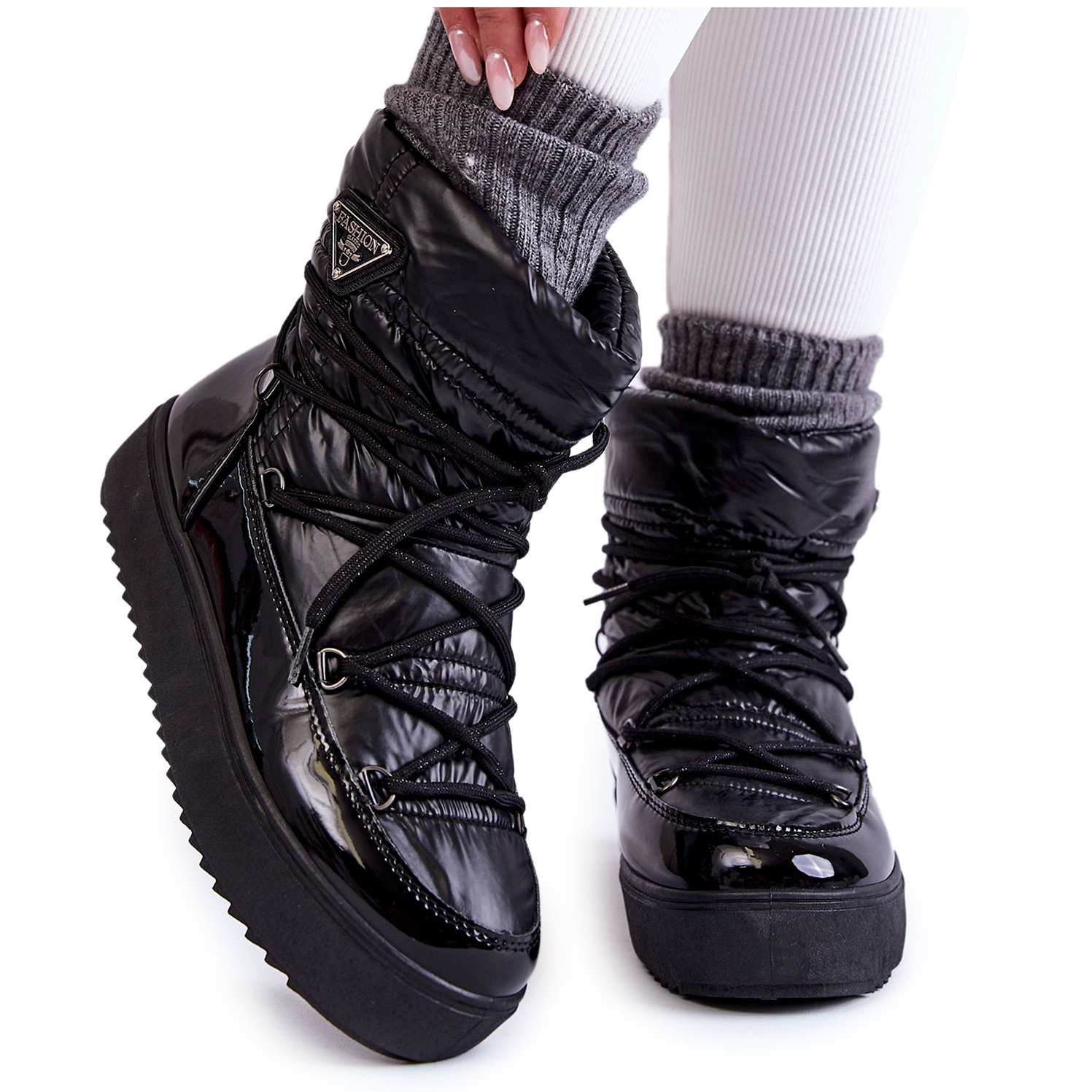 Détails: PM1 Bottes de neige à lacets à la mode pour femmes en noir Carrios le noir