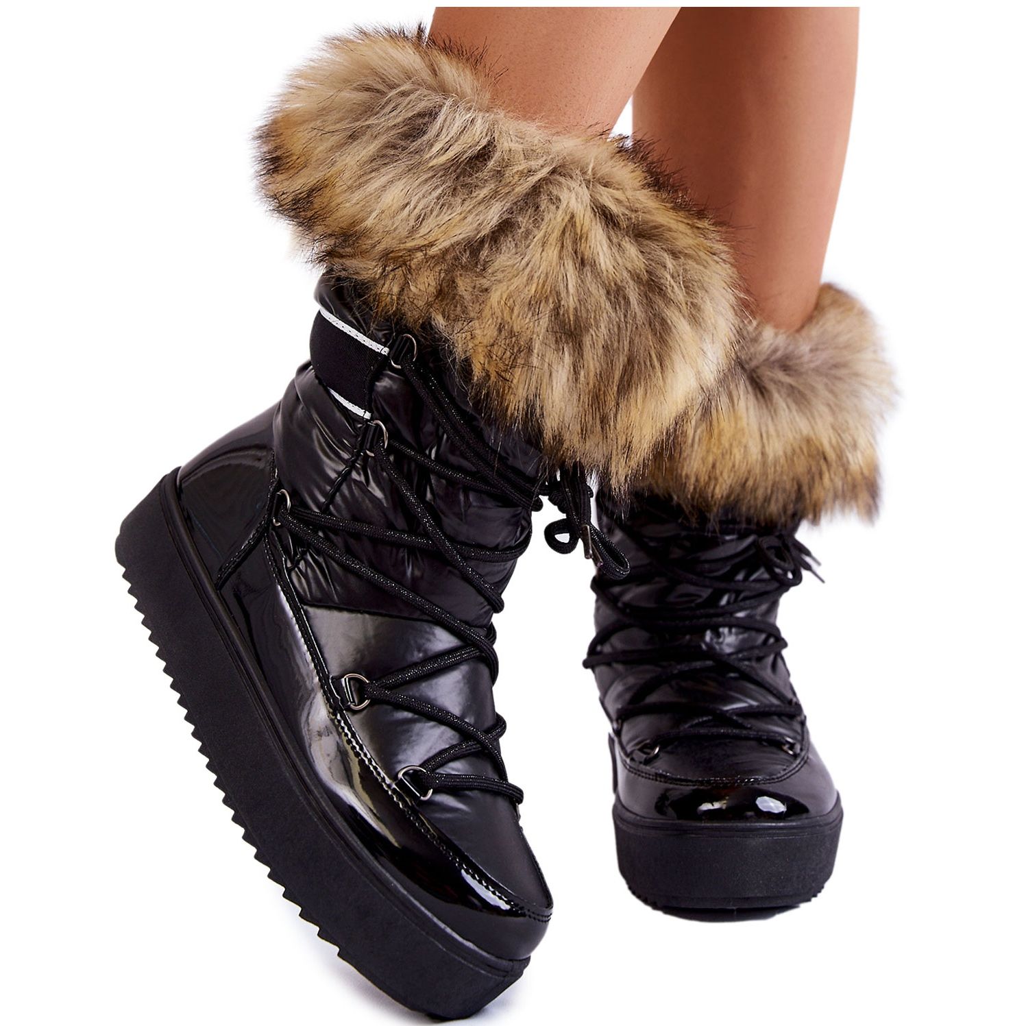 Détails: PA1 Bottes De Neige À Lacets Avec Fourrure Pour Femmes Noir Shannon le noir