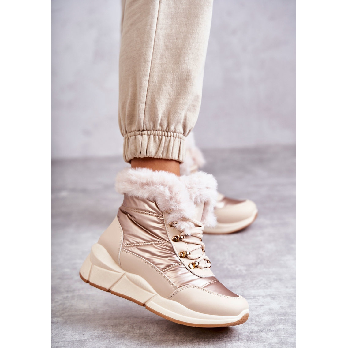 Nous vous présentons un modèle tendance de bottes de neige à lacets PE1 pour femme de couleur beige clair, qui deviendront un élément indispensable de votre garde-robe d'hiver. Fabriquées dans un matériau résistant au froid et au vent, ces bottes de neige gardent vos pieds confortables et au chaud même pendant les jours les plus froids.