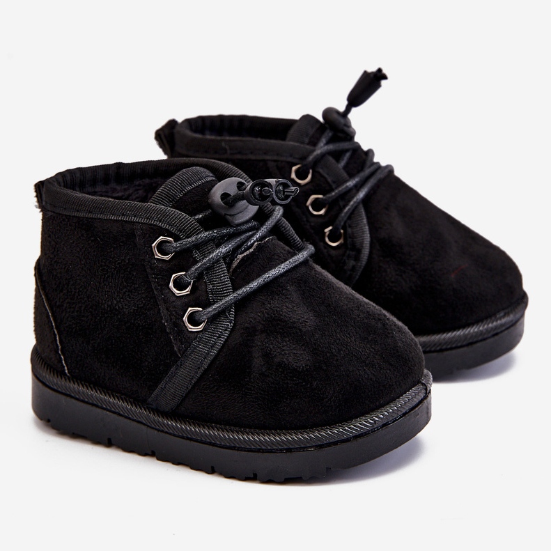 Détails: Bottes de neige à lacets pour enfants réchauffées avec fourrure Black Hunter noir noir