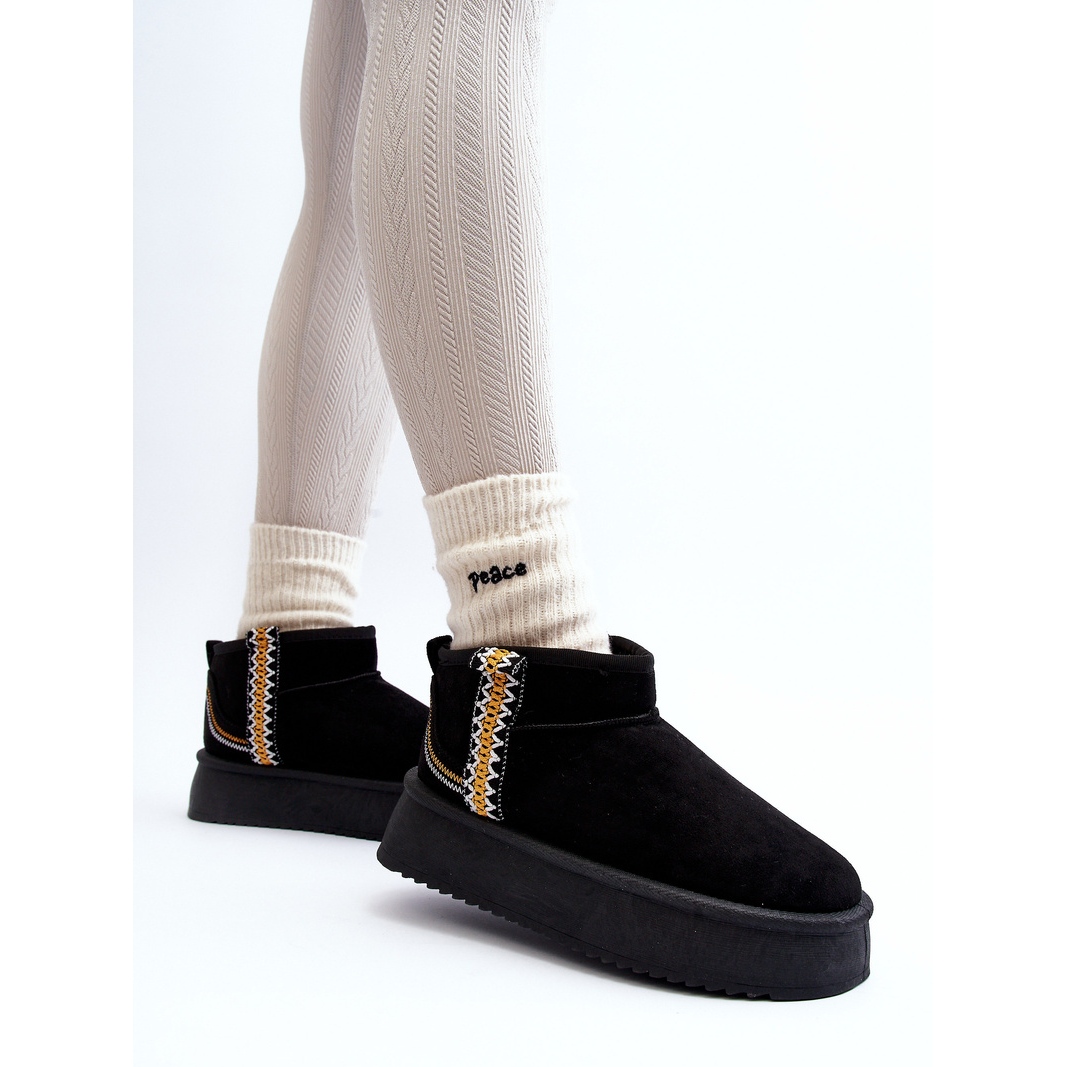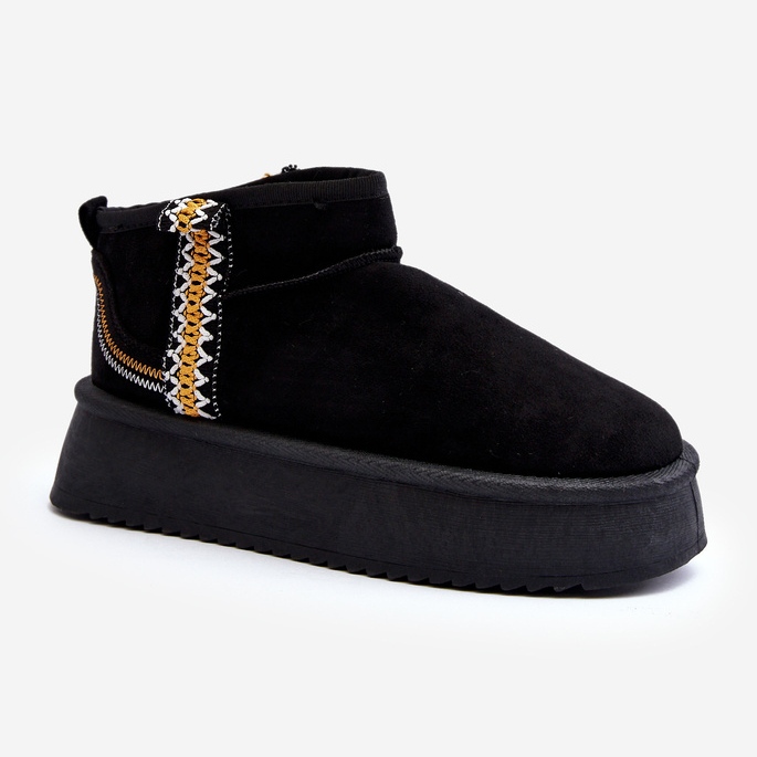 Fabriquées en suède écologique de la plus haute qualité, les bottes de neige Platform sont non seulement superbes, mais sont également respectueuses de l'environnement. Ce sont des chaussures créées pour ceux qui valorisent les valeurs éthiques sans sacrifier le style et l'élégance. La couleur noire des chaussures est décorée d'un motif aztèque unique, conférant au produit un caractère et un charme uniques qui charmeront sûrement de nombreuses fashionistas.