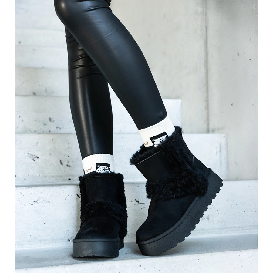 Détails: Bottes de neige à plateforme en éco-daim noir décorées de fourrure de Peters le noir