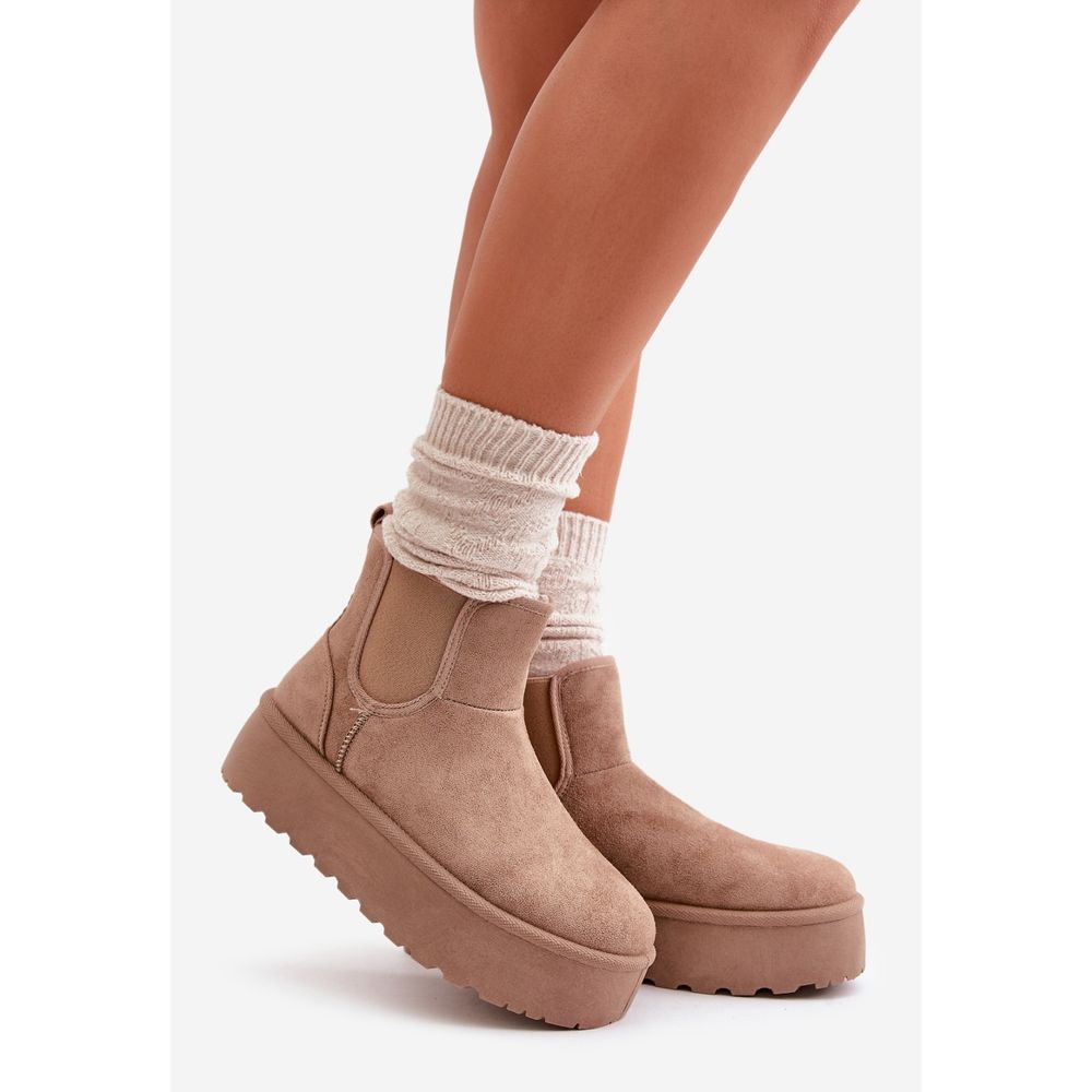 Détails: Bottes de neige à plateforme et empiècements élastiques pour femme, beige foncé Rialine