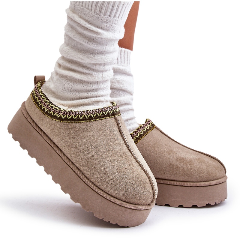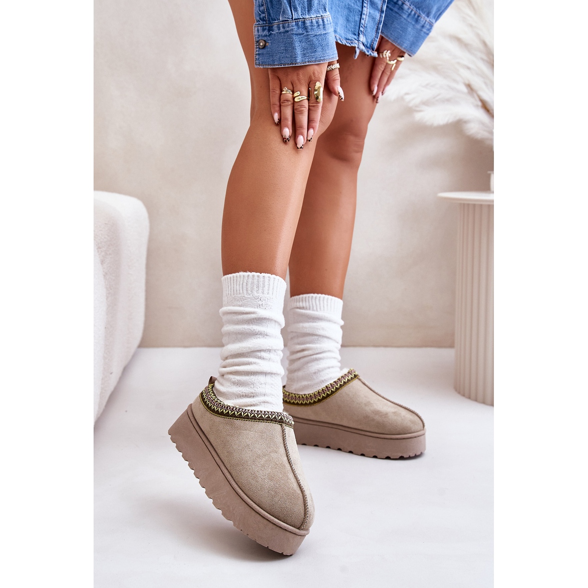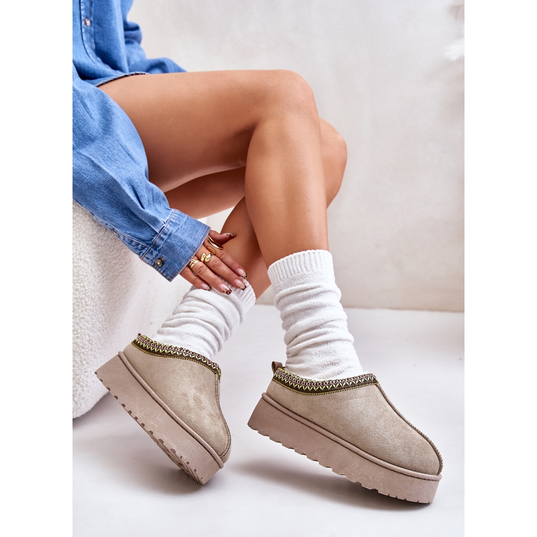 Les bottes de neige séduisent non seulement par leur apparence, mais surtout par leur confort. Montés sur une plateforme stable de 4 cm de hauteur, ils offrent une excellente isolation contre le froid et un amorti confortable. L'intérieur des chaussures est isolé avec une fourrure douce, qui garantit la chaleur même pendant les jours les plus froids. Un avantage supplémentaire est le passepoil décoratif qui distingue ces bottes de neige des autres modèles.