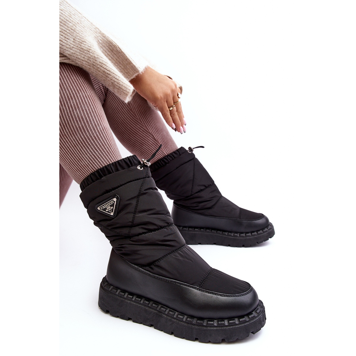 Bottes de neige pour femmes sur la semelle épaisse de Lurea - chaleureuse, confortable et élégante. La combinaison noire et mate d'éco-cuir et de matériau textile sera excellente les jours givrés, et la fourrure épaisse à l'intérieur fournira un confort thermique même à basse température. Le modèle réglé sur une plate-forme de 4 cm en semelles en caoutchouc donne la stabilité et la légèreté de l'étape, et la talon au sommet du haut empêche la neige.