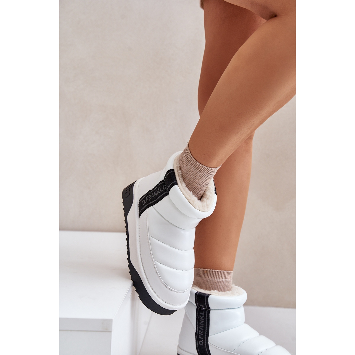 Découvrez l'élégance et le confort des jours d'hiver grâce aux bottes de neige basses sur une semelle épaisse D.Franklin DFSH371011 dans une belle couleur blanche. Les chaussures de ces femmes combinent le style et la fonctionnalité, ce qui en fait une solution idéale pour les journées d'hiver fraîches.