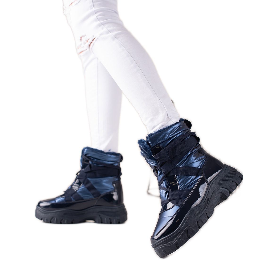 Si vous recherchez des bottes de neige confortables, chaudes et élégantes pour la saison automne/hiver, les bottes de neige TRENDI Navy Blue Shiny sont le choix parfait pour vous. Dans l'emballage du fabricant, vous trouverez tout ce dont vous avez besoin pour profiter pleinement de l'hiver. Enrichissez votre garde-robe et choisissez des chaussures qui allient confort et design moderne !